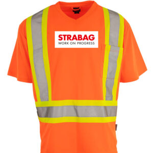Hi Vis V-Neck Short Sleeve Safety Shirt – Strabag Logo – Work On Progress